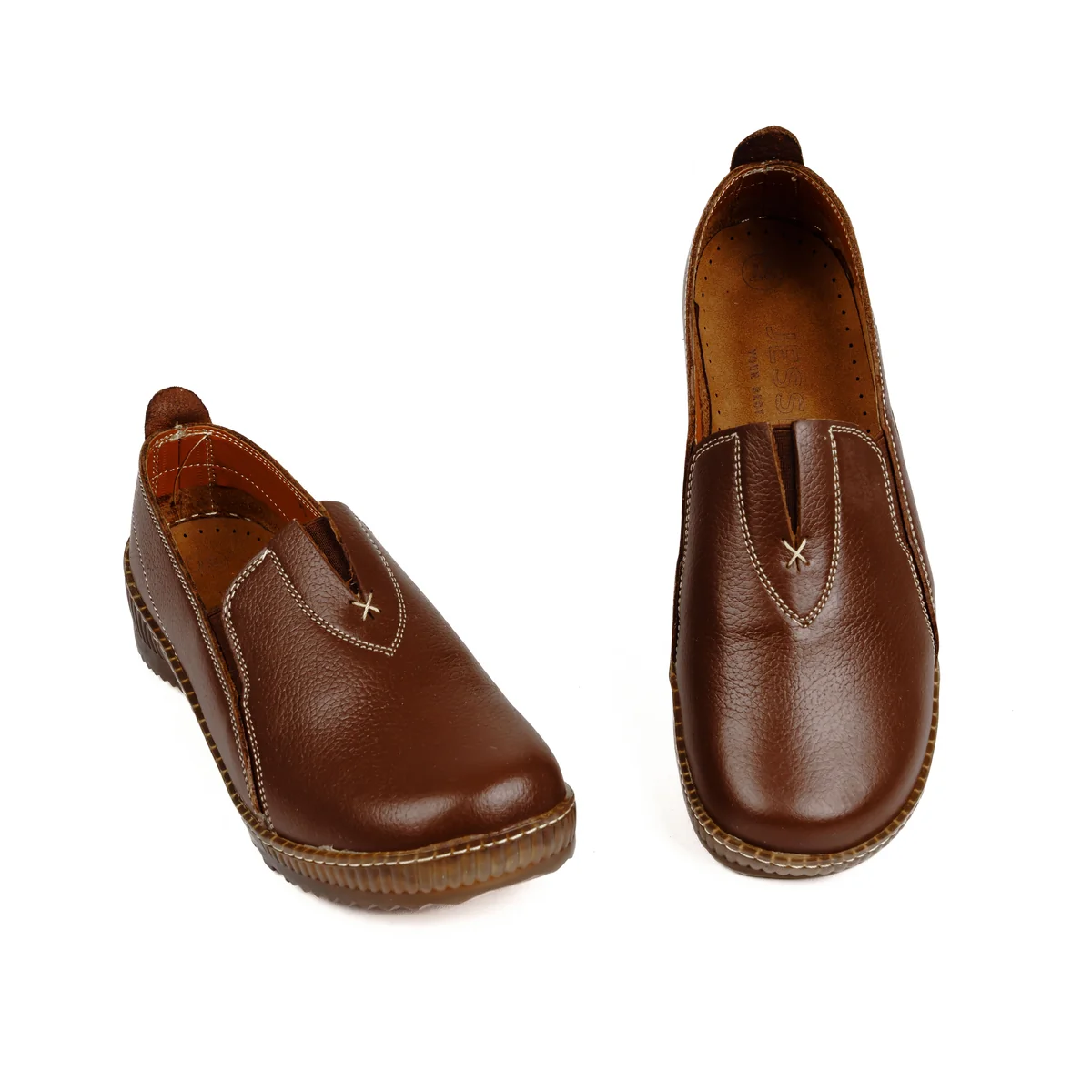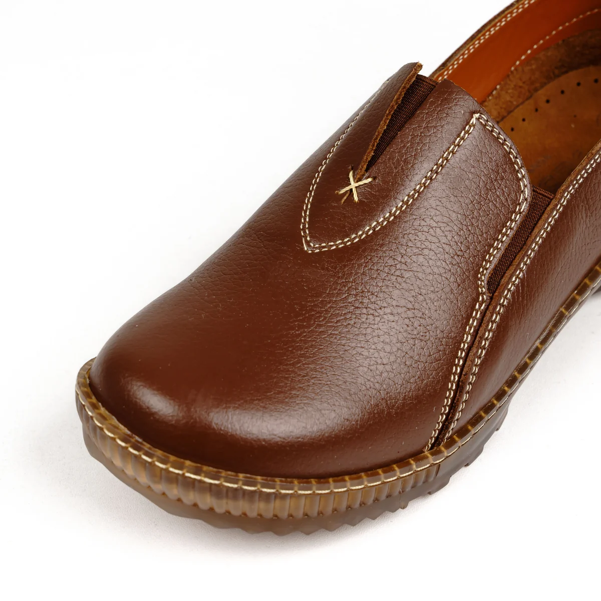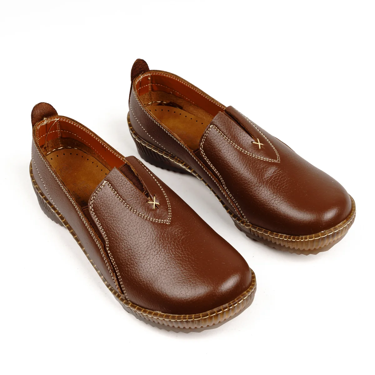 جلد طبيعي فرش جلد طبيعي خياطه بعنايه نعل كريب طري المقاسات 37ل 42 ارتفاع الكعب 1 سم