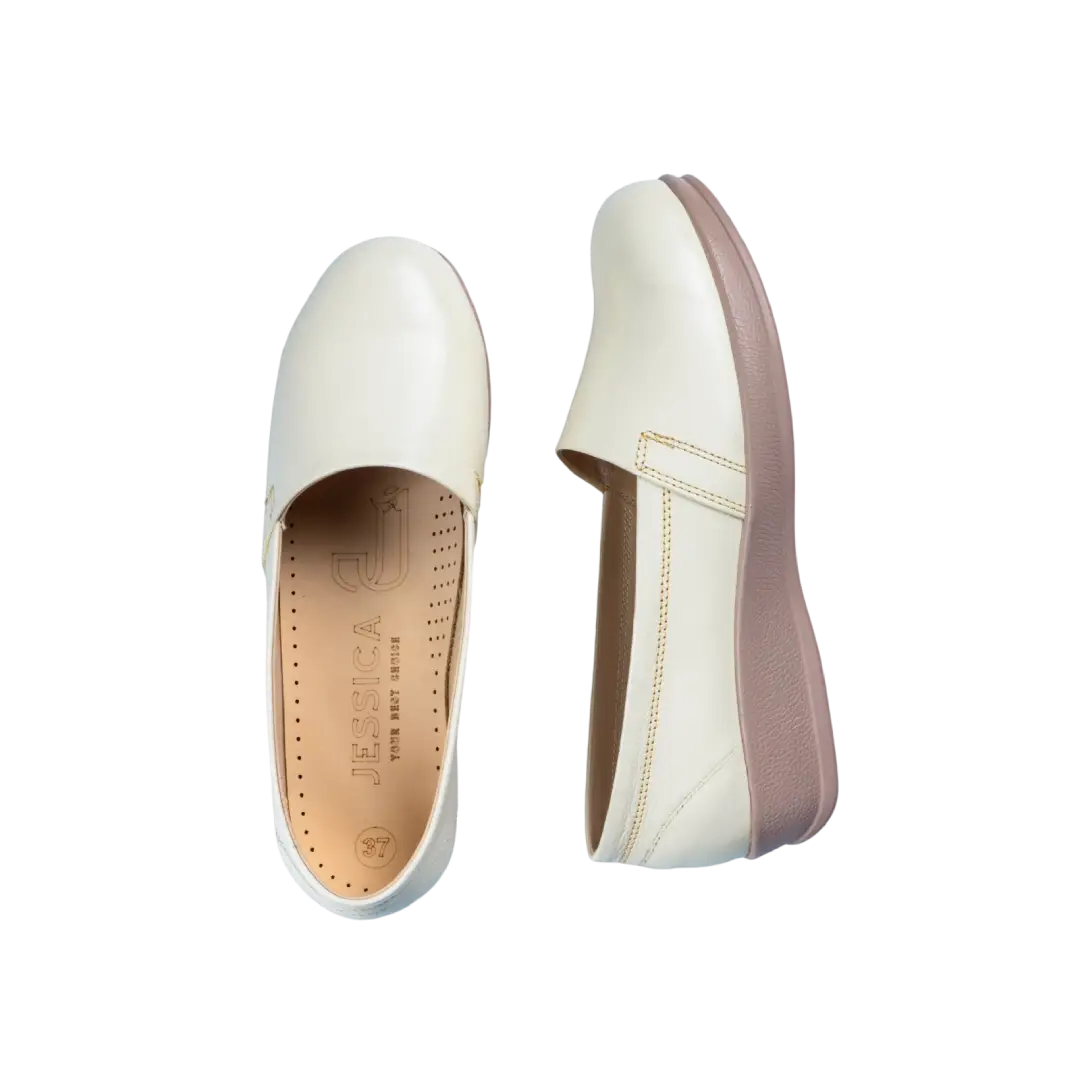 Manufactured locally by Jessica, these shoes combine durable materials, everyday comfort, and simple elegant design, making them a reliable choice for women looking for comfortable genuine leather walking shoes suitable for daily wear.